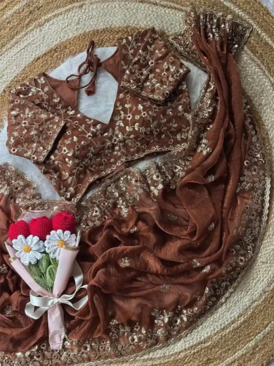 *Soft Fendy Chiffon Saree With Heavy Embroidery Sequence And Thread Work All Over The Saree And Scallop Border *