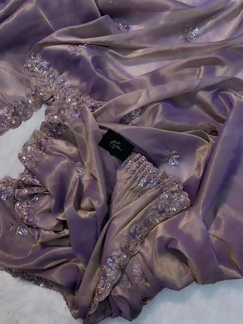 Tissue Silk Saree Dual Tone of Lilac and Gold Hues.